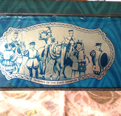 The charming tin shows the King and Queen along with the Coronation ceremony, the procession, taking the oath, entrance of the king's champagne, beautiful rich colorful graphics!