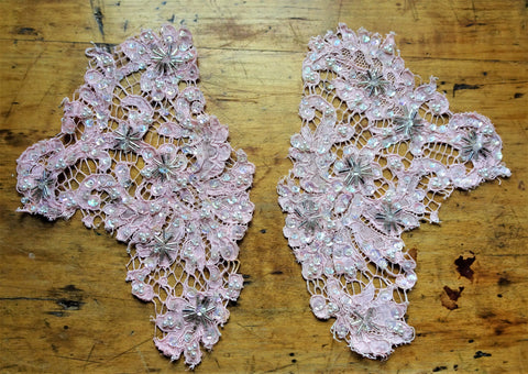 BEAUTIFUL French vintage lace appliques with hand beading, lovely pink lace.