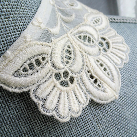 This 1920s-30s cotton collar has lovely openwork and embroidery design. Perfect to use on a sweater or dress, or use in fine heirloom sewing project.