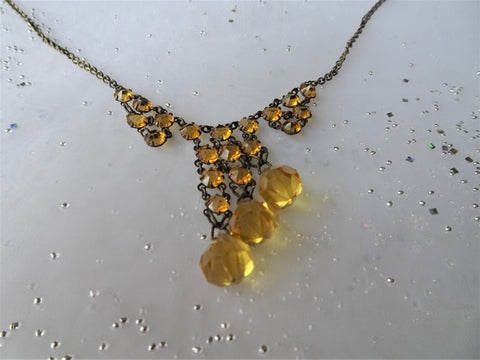 1920s GLITTERING Czech Crystal Necklace,Sparkling Faceted Yellow Glass,Art Deco Necklace,Vintage Bridal Necklace,Collectible Vintage Jewelry