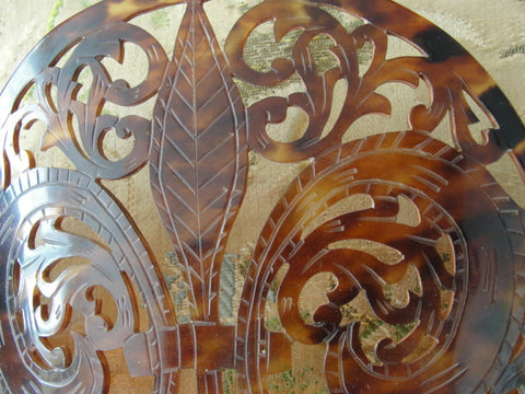 BEAUTIFUL Very Large Antique Hair Comb Lovely Fretwork Filigree Carved Style Tortoise Shell Decorative Hair Accessory