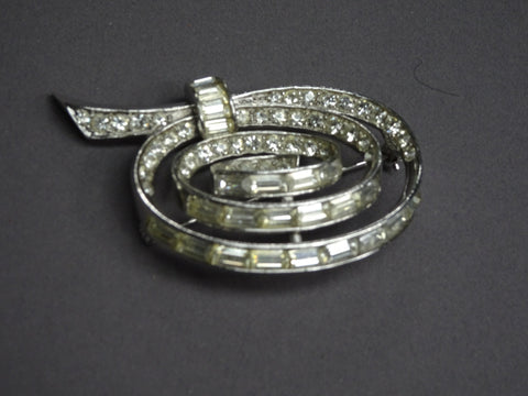 STUNNING Art Deco Swirl Ribbon brooch signed BOUCHER. This elegant brooch is perfect for day or evening, featuring lovely baguette cut stones and round stones.