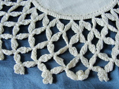 Lovely Vintage Linen and Crochet Hand Made Lace Small Doily UNIQUE Design Great Cottage Romantic Home Decor.