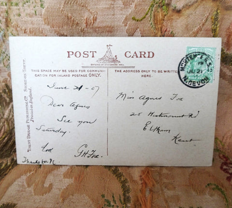 WONDERFUL 1907 postcard, a souvenir of Trent, showing a beautiful old teapot kettle with the original in Hereford Museum. Published by Trent Bridge Publishing co. Stoke on Trent, England. Posted on June 21st 1907 in very nice condition, slight wear to corners. Would be lovely to frame!