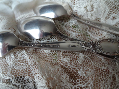 This vintage silver plated set of spoons was intoduced in 1953 by Community plate. Enjoy using them and adding to your silver collection!