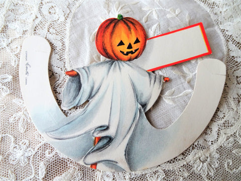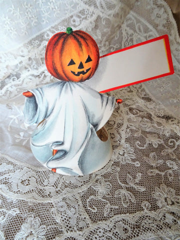 CUTE! Vintage circa 1940s Jack O Lantern Ghost place card!