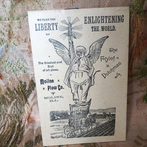 FABULOUS and RARE Moline Plow Co, Moline ILL vest pocket 1887 memorandum booklet advertising the Flying Dutchman Jr and other farming cultivators. The booklet has never been used and is in fantastic condition, it measures about 4.25 inches by just under 3 inches, exceptional condition. This is a very rare item, it was placed inside a book for over a century!