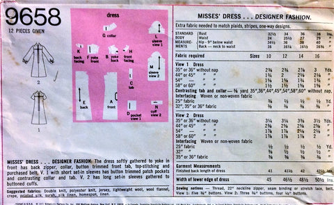 RETRO 70s Slim Designer Dress Pattern SIMPLICITY 9658 Casual Day Dress Bust 32 Vintage Sewing Pattern UNCUT