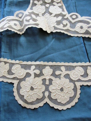 BREATHTAKING 20s Antique French Netted Lace Cotton Appliques Circular Flounce Art Deco Roses Flowers Flapper Era Downton Abbey
