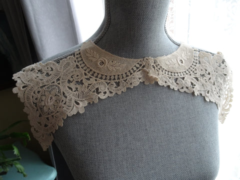 BEAUTIFUL antique French lace cotton collar with an intricate design. A creamy off white color. The collar can be appliqued.