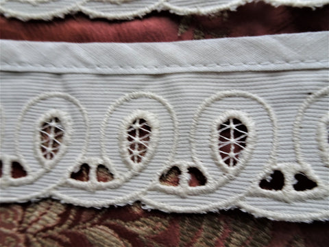 They each measures about 10.5 inches by 2 inches. It is a creamy off white and the size is perfect for dolls and other fine sewing crafting projects.