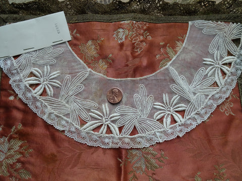 This is 'old stock', some of it dating to the turn of the century! This is a salesmans sample never used, its just exquisite embroidered organdy with French lace,ideal for dolls because of the dainty size!