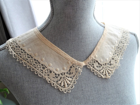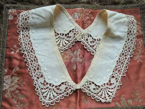 BEAUTIFUL antique linen and lace collar with embroidery. A creamy off white color.