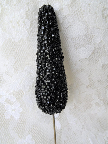 FABULOUS Art Deco hat pin ornament. This is a wonderful hand beaded black short hatpin. The design is striking. The glittering hat pin measures about 5.5 inches in length, in wonderful condition. This would be fabulous on your vintage hats. A lovely vintage item to add to your Art Deco jewelry collection. We ship internationally and combine shipping.
