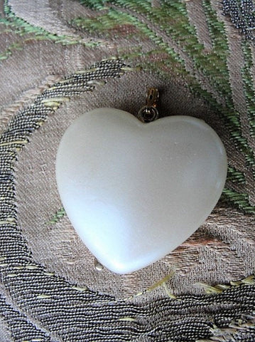 Beautiful Pearl Like Large PUFFY Heart Shape Pendant Necklace.