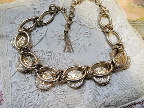 BEAUTIFUL Vintage Glass and Metal Necklace, 1950s Necklace, Art Glass, Mid Century Jewelry, Collectible Jewelry