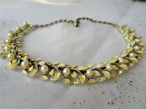 BEAUTIFUL Vintage Necklace, Perfect Bridal Necklace, Enamel, Pearls and Rhinestones, Lovely Vintage Necklace, Collectible Vintage Jewelry