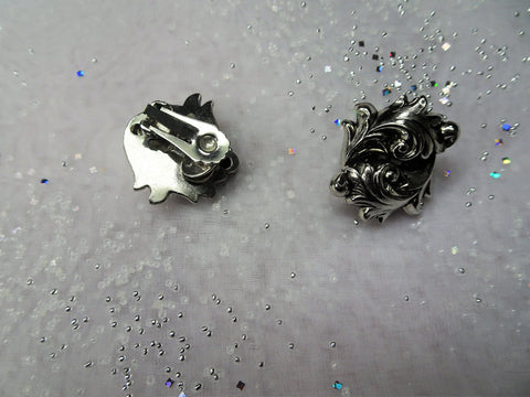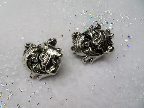 FABULOUS classy design vintage clip on earrings. These are lovely scrolling leaf motif silver tone metal . The earrings are clip on and measure about 1.25 inches across. When wearing these striking earrings you will be sure to receive compliments!
