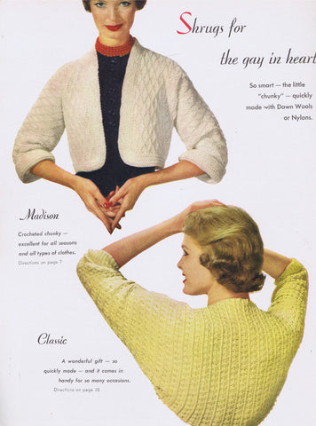 A large variety of beautiful designs of Stoles and Shrugs in the 1950's style hairpin lace, crochet and knit: