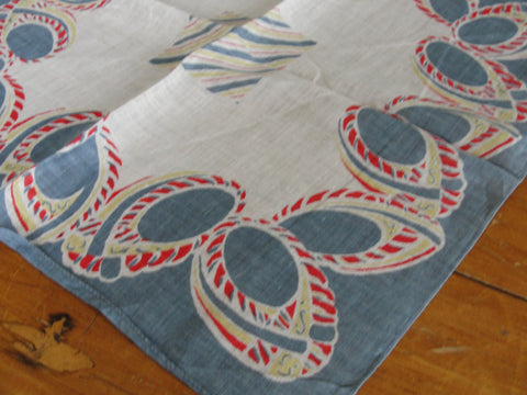 This fabulous blue, red,yellow and white hanky has an unusual design.