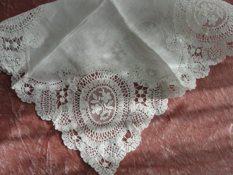 Beautiful Antique Lace Hankie BRIDAL WEDDING HANDKERCHIEF Hanky Fancy Wide Lace Perfect Bride to Be Bridal Wedding Something Old Present