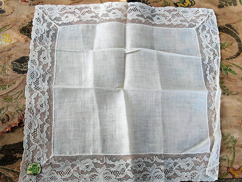 GORGEOUS vintage bridal wedding hanky Fine Irish Linen and French wide Lace handkerchief.