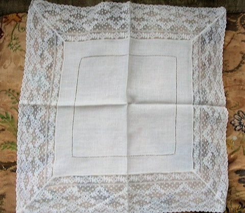 This fine hankie has exquisite, intricate and beautiful French lace. It measures about 12.25 inches by 12.25 inches, fine Irish linen center , in wonderful condition, looks never used.