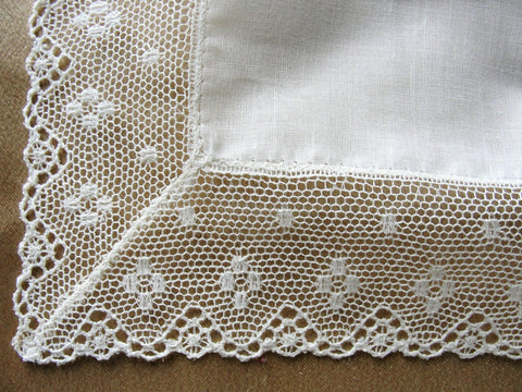 BEAUTIFUL vintage bridal wedding hanky Fine Irish Linen and French wide Lace handkerchief. This fine hankie has exquisite, intricate and beautiful vintage French lace. It measures about 10.25 inches by 10.25 inches, fine Irish linen center , in wonderful condition-never used.