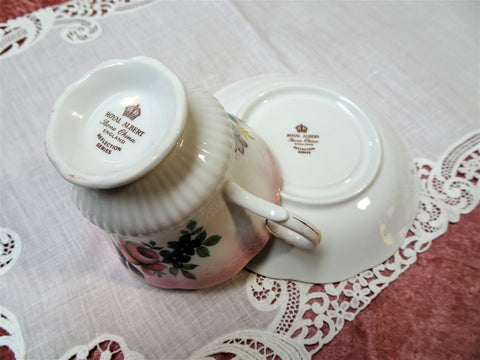 CHARMING Royal Albert English Bone China Teacup and Saucer,REFLECTION Series,Pink Roses,Pedestal Cup,Collectible Vintage Teacups