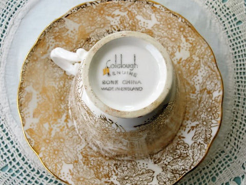LOVELY Chintz Vintage TeaCup and Saucer Colclough English Bone China All Over Gold Chintz Flowers Cup and Saucer Tea Time Collectible