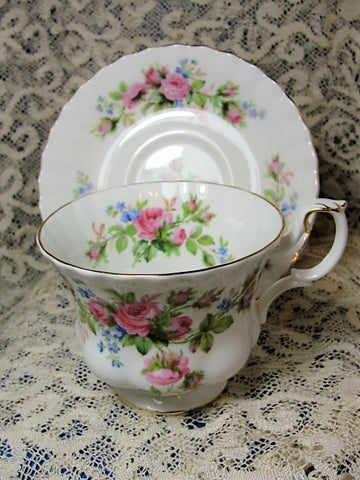 LOVELY Vintage Teacup and Saucer Royal Albert English Bone China Lush PINK Roses MOSS ROSE Vintage Cup and Saucer Tea Time Cups and Saucers Bridal Gifts House Warming Gift