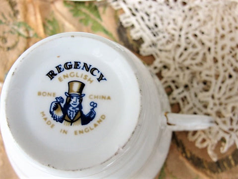 Pretty cup and saucer set by Regency English Bone China. This vintage teacup and saucer is decorated with cheerful yellow flowers . The cup and saucer are in nice vintage condition, no chips or cracks.