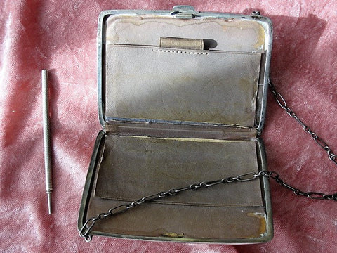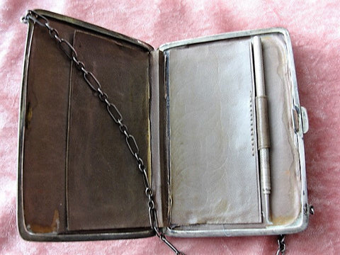 Antique English hallmarked sterling silver purse or Aide Memoire with Silver Pencil.