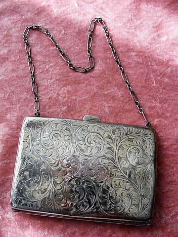 This is a beautiful antique Birmingham hallmarked sterling silver purse from 1913-14 that is beautifully engraved in a classic design.