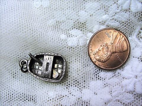 FABULOUS Antique Silver Charm Reed Boat Coracle Boat British Isles Row Boat Beautiful Details Antique Jewelry