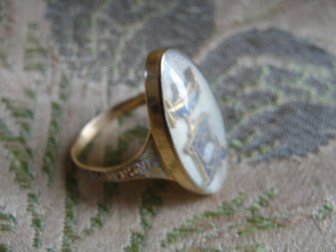 Rare Antique GEORGIAN Blue Urn MEMORIAL Mourning Ring Enamel and Rock Crystal Dated 1788 Memento Mori Jewelry