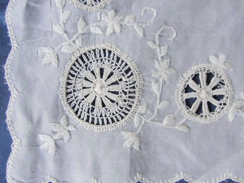 BEAUTIFUL Antique French Embroidered Silk Handkerchief Hanky Lots of Handwork Needle Lace Special Bridal Wedding Hankie, Collectible Hankies