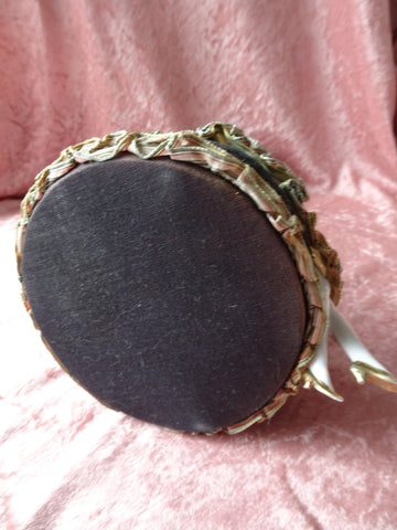 The dress is silk taffeta and has pin marks and some damage but still displays beautifully. The hat stand has it's original velvet covering. This is a rare find and would make a most beautiful addition to your collection of hatpins, pincushions, half dolls and hat stands!