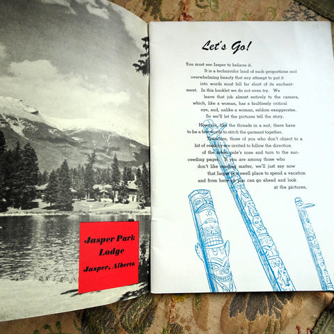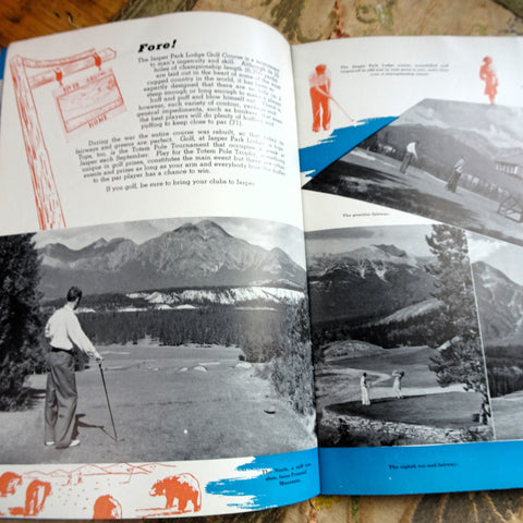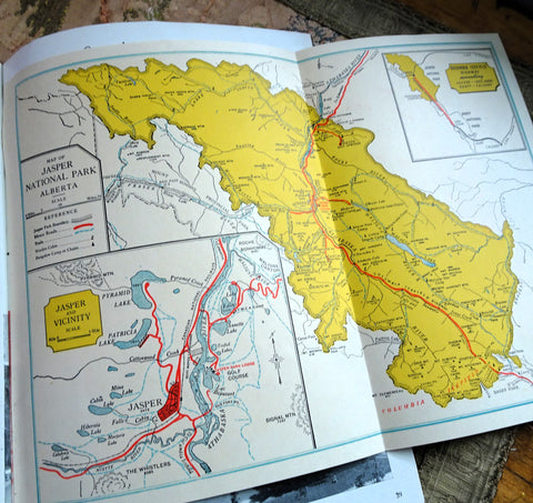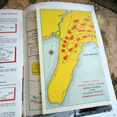 The booklet contents include: Accommodation; All-Expense Package Tours; Big Game and Camera Hunting; Canadian National Equipment; Canadian National Representatives; Columbia Icefield; Fishing; Golfing; Hiking Trips; Jasper Park Lodge - general information and rates; Maligne Lake; Maligne River Anglers' Club; Miette Hot Springs; Mount Robson Park; and so much more. Interesting to see the prices- unbelievable!