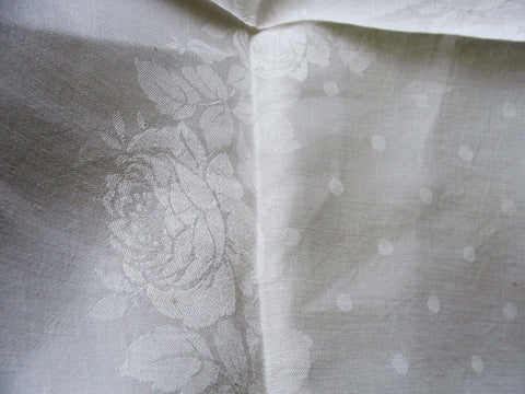 Beautiful high quality white damask linen dinner napkins, with beautiful roses and polka dots pattern, luxurious to the touch.Perfect for elegant dining!