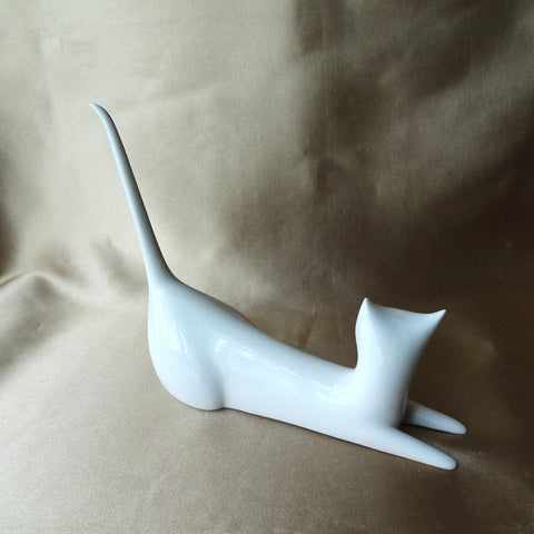 WONDERFUL MCM Laying Cat Figurine by Jaroslav Ježek for Royal Dux, Sleek and Vintage Modern Cat Figurine, Collectible Mid Century Figurines