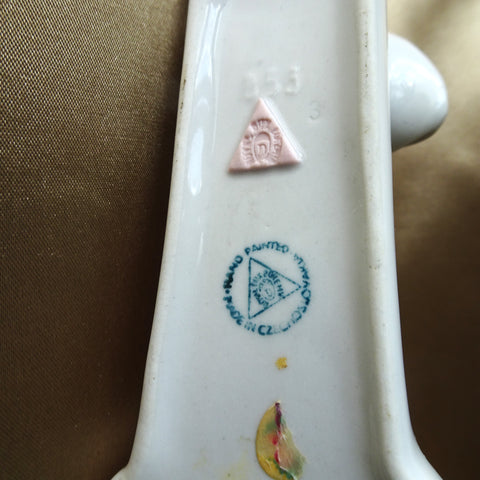 The figurine is fully marked along with the famous pink bisque triangle mark with the impressed D and 'Royal Dux Bohemia', number 553 along with paper labels.