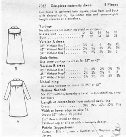 Vogue 7032; circa 1966; One-Piece Maternity dress