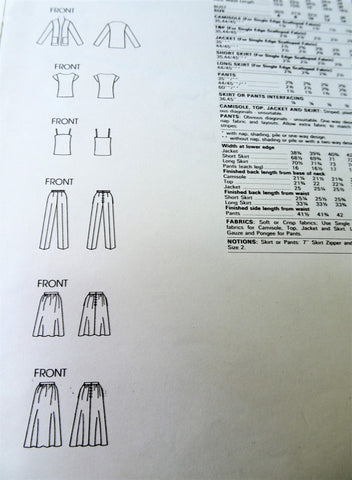 1980s FAB Camisole Top Jacket Skirt Pants Pattern VOGUE 2687 Perfect Summer/Travel Wardrobe Bust 34 Vintage Sewing Pattern UNCUT