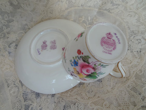 BEAUTIFUL Antique Demitasse Cup and Saucer, Mintons English Bone China, Made For BIRKS, Hand Painted and Enameled, Collectible Vintage Cups and Saucers