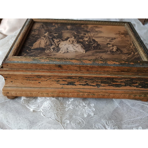 BEAUTIFUL French Antique Box,Jewelry Box,Trinket Box,Make Up Box,Vanity Display,Lovely Watteau Scene,French Chateau Decor, Collectible Boxes