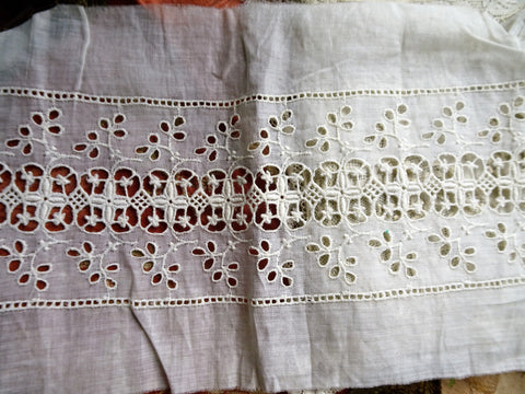 BEAUTIFUL Antique French White On White Embroidered Flounce Trim,Heirloom lace,For Dolls Christening Gowns Bridal, Journals, Fine Crafts,Collectible Vintage Lace