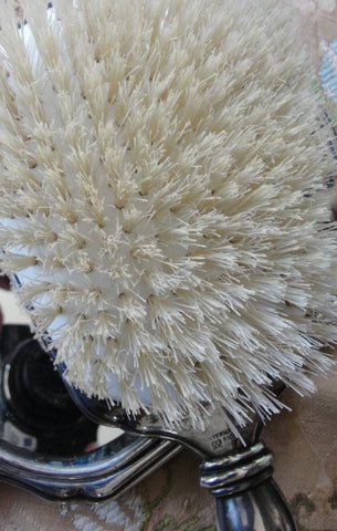 To complete the set there is a hair brush in wonderful condition. The set has beautiful engraved bows,scrolls,roses and stripes-just gorgeous! The set is monogrammed which appears to be FKY.