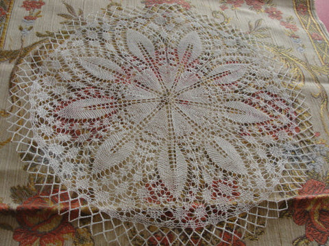 This is the finest hand work I have seen in a long time, the workmanship is just breath taking! This is a large hand knitted lace doily that measures 10.25 inches across, in original never used condition.