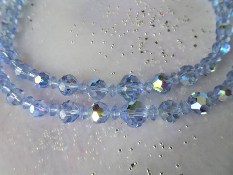 Two gorgeous strands of faceted sparkling beads, in a dreamy blue color with aurora borealis finish.